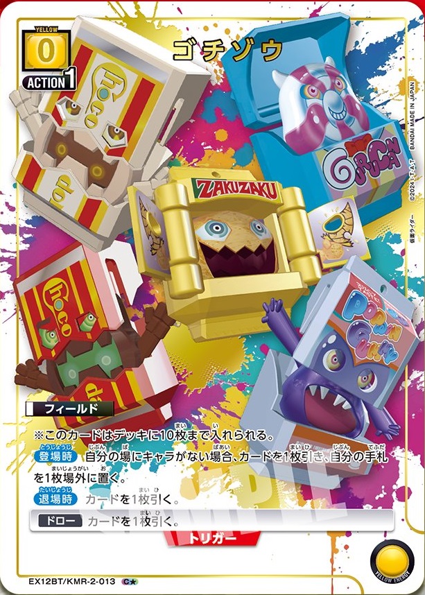 内容 | 内容 ・カード:8枚 ・1ボックス:16パック入 種類数 ・SR(スーパーレア):8種 ・R(レア):12種 ・U(アンコモン):25種 ・C(コモン):28種 ・AP(アクションポイント):5種 |
