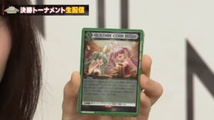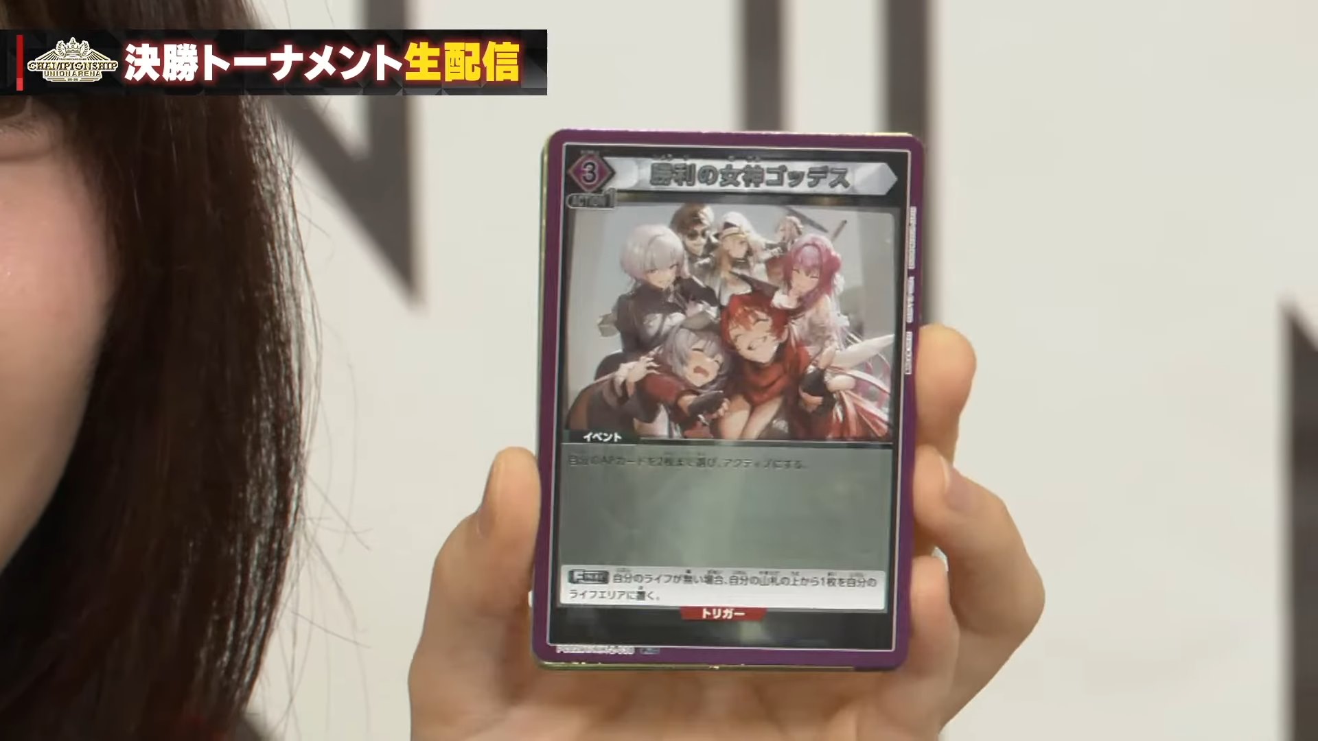 【アタック時】このカード以外の自分の場の [特徴:ゴッデス] の元々のカード名が3種類以上ある場合、カードを1枚引いてもよい。そうした場合、自分の手札を1枚場外に置く。