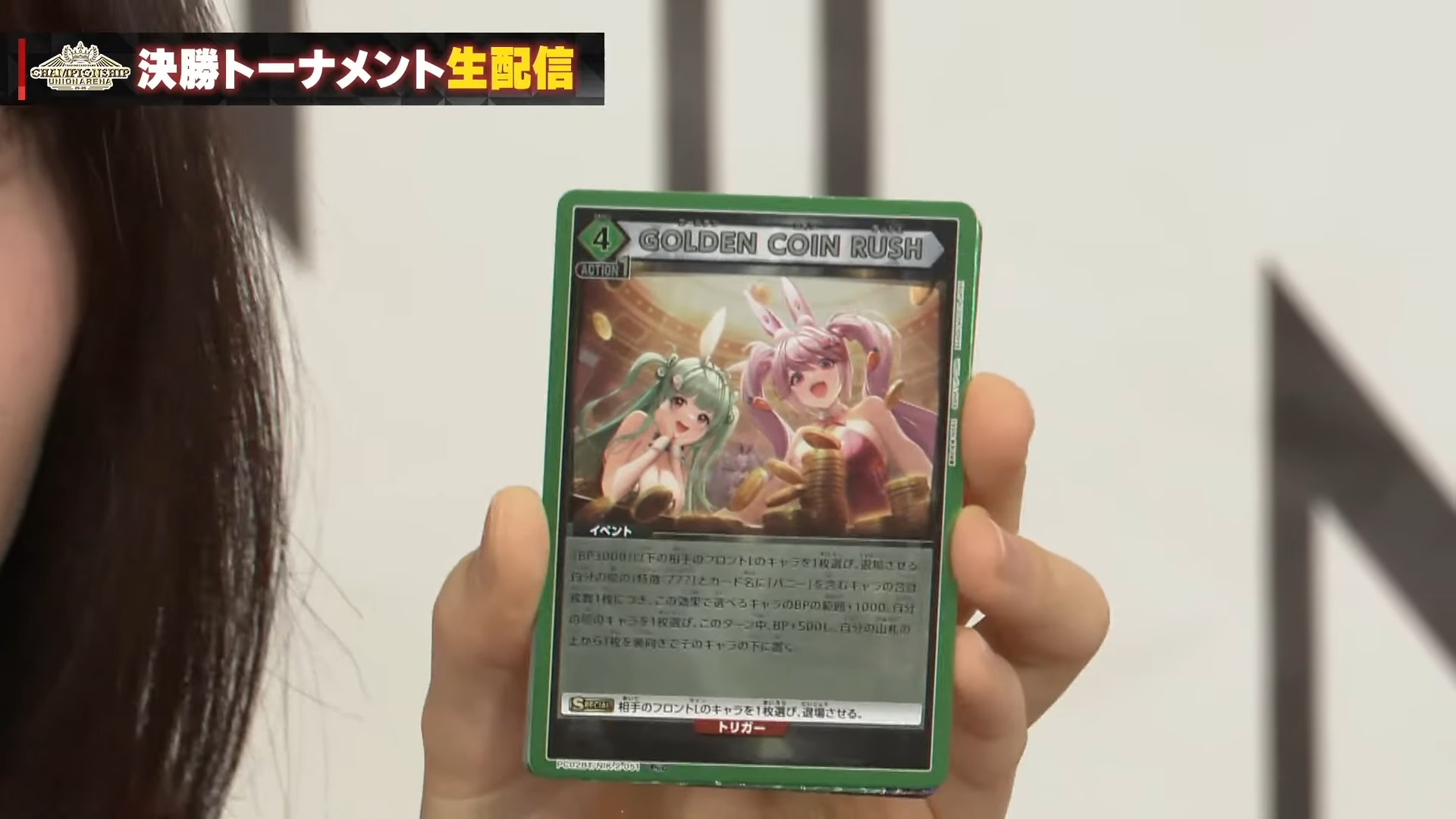 自分の場の「特徴:777」とカード名に「バニー」を含むキャラの合計枚数1枚につき、この効果で選べるキャラのBPの範囲+1000。自分の場のキャラを1枚選び、 このターン中、BP+500し、自分の山札の上から1枚を裏向きでそのキャラの下に置く。