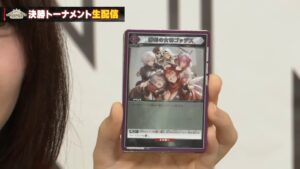 【登場時】カードを1枚引き、自分の手札を1枚場外に置く。