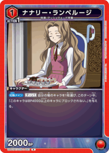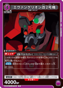 『ヱヴァンゲリヲン新劇場版』の通称「紫のWILLEデッキ」において、相手のターンにレイドトリガーで場に出た際に相手のキャラのBPを下げることでアタックを止めることができます。加えて、「EVA-1-113 式波・アスカ・ラングレー」と組み合わせた際にBP2000以下のキャラを退場させたり、複数のキャラのBPを下げることができ、多くのデッキに対して優位が取れている状態と判断いたしました。